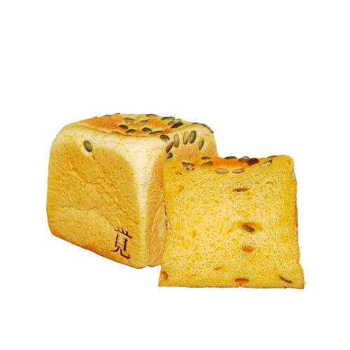 以黃金南瓜泥揉製而成的生吐司麵體,搭配南瓜丁增添層次口感,入口皆是滿滿美味與營養。